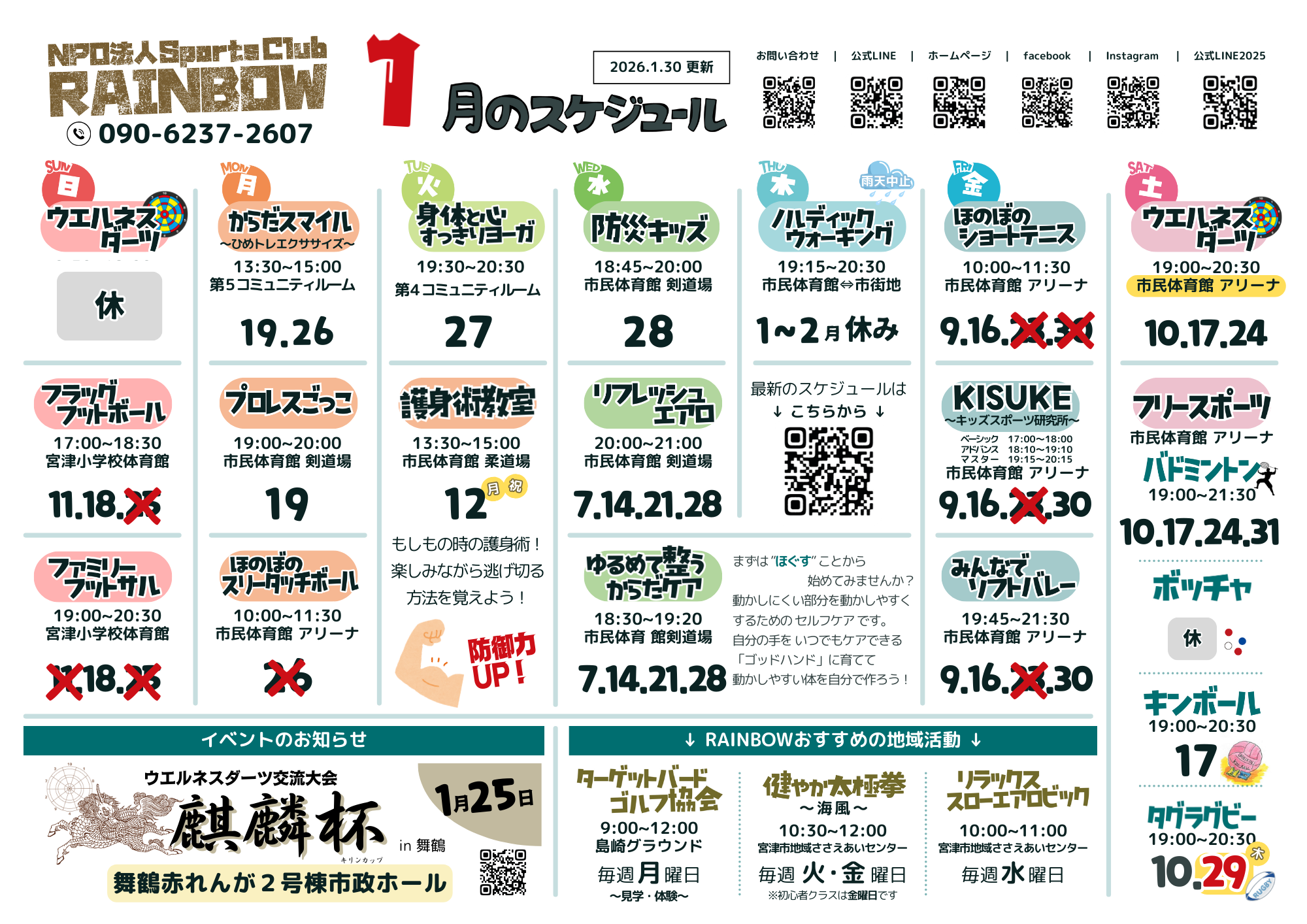 新着情報 2026.1.30new 1/30 ほのぼのショートテニス中止します。 2026.1.29new 2/23 ZUMBAを開催します。 2026.1.29new 2月のスケジュールが完成しました! 2026.1.28new NPGの新年号が完成🎶